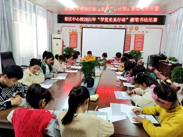 規(guī)范書寫漢字,傳承中華文化。為加強(qiáng)青少年中華文化傳統(tǒng)教育,推動(dòng)“大閱讀”活動(dòng)的深入開展,景區(qū)中心校舉辦了“學(xué)黨史 見行動(dòng)”硬筆書法比賽活動(dòng)。此次比賽從《中國共產(chǎn)黨簡史》書中摘選部分經(jīng)典句段作為書法參考內(nèi)容,通過書法比賽激發(fā)學(xué)生對書法藝術(shù)的興趣愛好,同時(shí)進(jìn)一步培養(yǎng)了他們對黨的熱愛之情。
