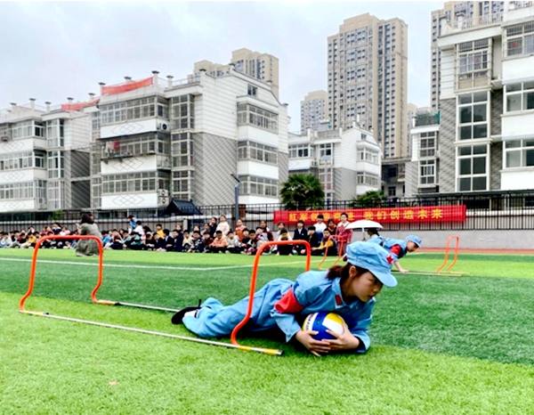 “飛奪瀘定橋”“四渡赤水”“血戰(zhàn)百丈關”……六里小學以寓教于樂的方式,舉行了以“追尋足跡 學史前行”為主題的紅色體育運動會。教師和學生們同臺競技,以“紅色+體育”的沉浸式黨史學習教育形式上了一堂別開生面的黨史體育課,帶領學生重溫黨史、回望來路,詮釋紅色文化核心價值,進行革命傳統(tǒng)教育。