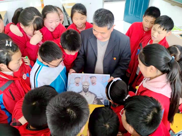 北城小學老校長李克德在為孩子們講述該校的紅色歷史