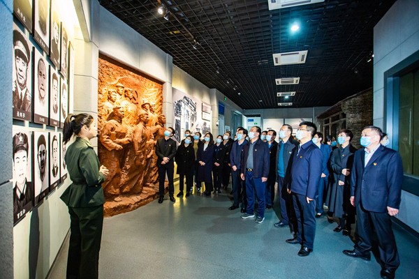 二是沉浸式體驗悟思想。赴阜陽市革命烈士紀念館開展紅色革命傳統(tǒng)教育暨“清明祭英烈”活動,紀念碑下重溫入黨誓詞,紀念館內(nèi)聆聽革命英雄事跡,實地感悟黨的百年光輝歷程。搜集整理百年黨史中的50個重大歷史事件,在辦公大樓建立黨史學習長廊,身臨其境學習黨的百年歷史。剪輯整理反映黨的重大歷史事件、革命英雄人物的16期學習視頻,通過多感官的視聽學習從黨的百年歷史中感悟精神偉力。