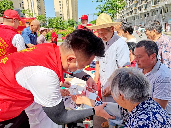 潁州區(qū)三十里鋪鎮(zhèn)“我為群眾辦實(shí)事共享健康生活”主題實(shí)踐活動(dòng)志愿者在為群眾測(cè)量血壓