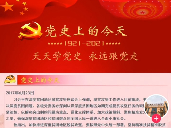 阜陽太和縣雙廟鎮(zhèn)創(chuàng)新形式,利用群眾喜聞樂見的短視頻平臺推出以“天天學(xué)黨史永遠(yuǎn)跟黨走”為主題的黨史學(xué)習(xí)宣講欄目——《黨史上的今天》。