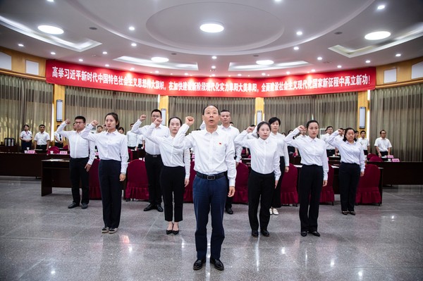 6月24日,在建黨百年喜慶時刻,為進一步增強基層黨組織的戰(zhàn)斗力、凝聚力和吸引力,市財政局(市國資委)舉行2021年新發(fā)展黨員入黨宣誓儀式。市財政局(市國資委)黨組成員、副局長(副主任)馬曉峰主持會議,局機關(guān)委員會委員、局屬各基層黨組織書記或黨務(wù)干部、2021年新發(fā)展黨員以及老黨員代表;局屬各基層黨組織入黨申請人、積極分子、發(fā)展對象、預(yù)備黨員等參加宣誓儀式。