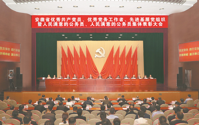 上午10時(shí),大會(huì)正式開始,全體起立,唱國歌。省委副書記程麗華宣讀《中共安徽省委關(guān)于表彰安徽省優(yōu)秀共產(chǎn)黨員、安徽省優(yōu)秀黨務(wù)工作者和安徽省先進(jìn)基層黨組織的決定》,省委常委、組織部部長丁向群宣讀《中共安徽省委安徽省人民政府關(guān)于表彰第七屆安徽省“人民滿意的公務(wù)員”和“人民滿意的公務(wù)員集體”的決定》。受到表彰的先進(jìn)集體和先進(jìn)個(gè)人代表先后上臺(tái)領(lǐng)獎(jiǎng),會(huì)場響起熱烈掌聲。陳宇翱、陳濤、余靜、程進(jìn)、彭艷等5位代表作了交流發(fā)言。