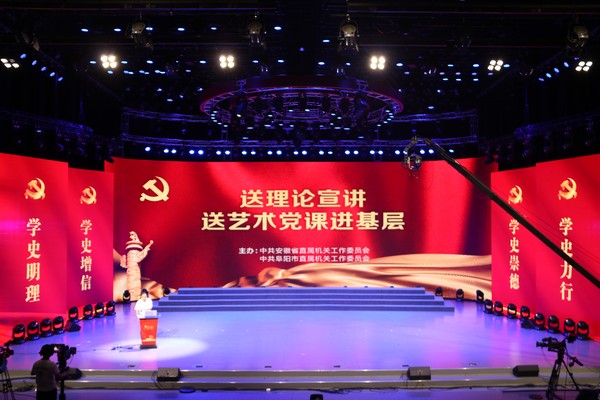為隆重慶祝中國共產黨成立100周年,持續(xù)推進黨史學習教育深入基層、取得實效,省直機關工委近期在全省范圍內開展“送理論宣講、送藝術黨課進基層”系列活動。7月6日下午,“送理論宣講、送藝術黨課進基層”活動在阜陽廣播電視臺一樓演播大廳舉辦。省直機關工委講師團一級調研員時明、省直機關工委講師團團長陶旭升、市委黨史學習教育第三巡回指導組組長楊新、省直講師團副團長李陽、省話劇院副院長段曉波、市直機關工委領導班子成員,市直、中央和省駐阜單位黨組織負責人和“兩優(yōu)一先”代表等共160余人參加活動?;顒佑墒兄睓C關工委副書記汪瑤主持。活動在網絡平臺進行了同步直播,近7萬名觀眾在線觀看學習。