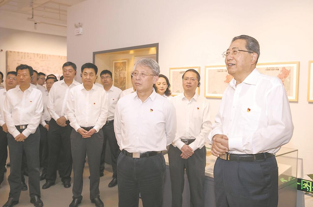 7月16日,省委書記李錦斌、黨史學(xué)習(xí)教育中央第三指導(dǎo)組組長沙海林與省委辦公廳綜合調(diào)研室黨支部全體黨員一起參觀“初心映江淮——慶祝中國共產(chǎn)黨成立100周年主題展”。本報記者許昊攝