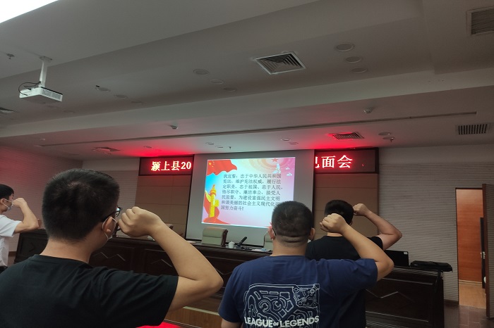 “我宣誓:忠于中華人民共和國憲法,維護憲法權(quán)威,履行法定職責(zé),忠于祖國、忠于人民,恪盡職守、廉潔奉公,接受人民監(jiān)督,為建設(shè)富強民主文明和諧美麗的社會主義現(xiàn)代化強國努力奮斗!”首批37名新錄用鄉(xiāng)鎮(zhèn)公務(wù)員在領(lǐng)誓人帶領(lǐng)下,舉起右拳,向憲法莊嚴宣誓,許下了對公務(wù)員這份職業(yè)的承諾。