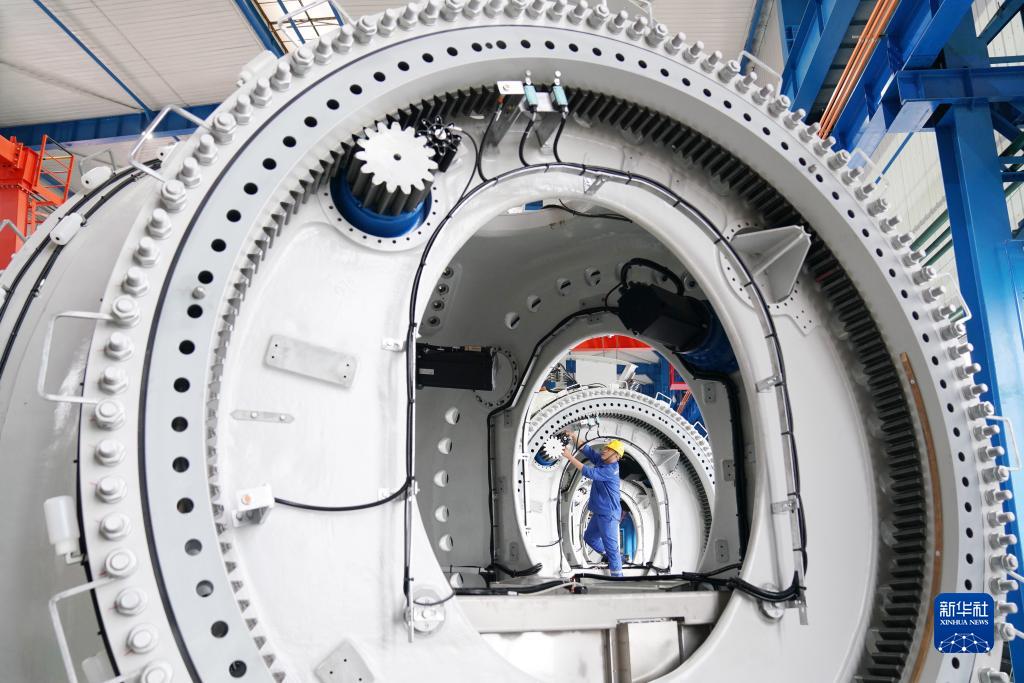 在位于黑龍江省齊齊哈爾市的中國一重集團有限公司風電裝備生產制造廠生產車間,工人在進行生產作業(yè)(7月1日攝)。新華社記者 王建威 攝