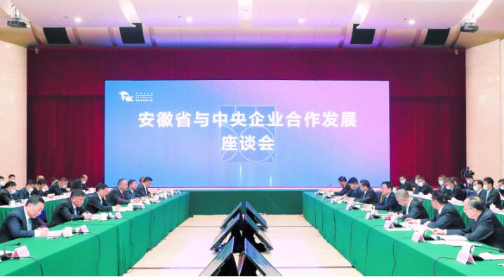 11月18日下午,安徽省與中央企業(yè)合作發(fā)展座談會(huì)在合肥舉行。本報(bào)記者 徐國康 范柏文 攝