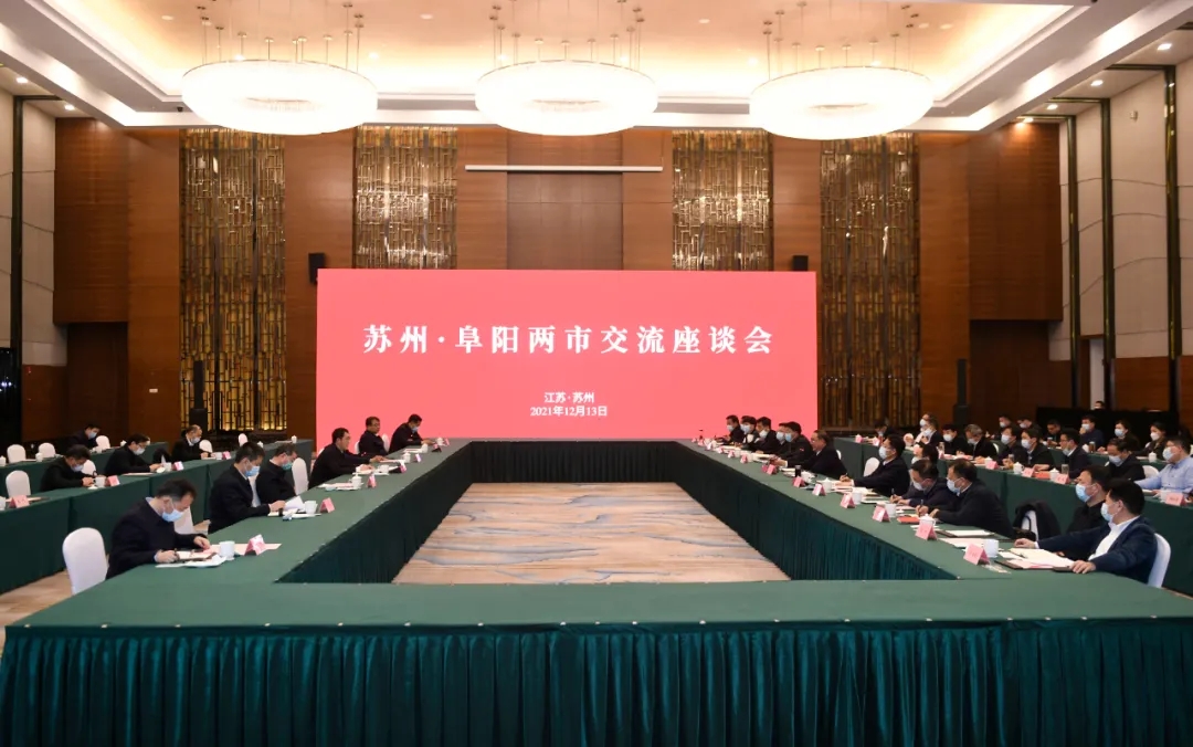 12月13日至14日,由市委書記孫正東,市委副書記、市長劉玉杰率隊的阜陽市黨政代表團赴蘇州市開展合作幫扶對接。江蘇省委常委、蘇州市委書記曹路寶,蘇州市委副書記、代市長吳慶文陪同或出席座談會。