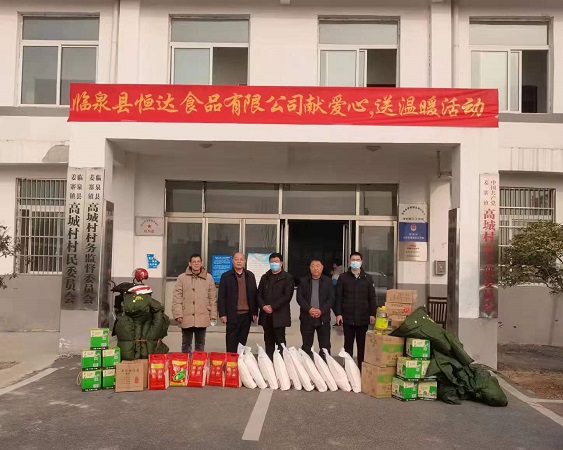 春節(jié)將至,歲寒情深。1月17日,臨泉縣姜寨鎮(zhèn)高城村駐村幫扶工作隊攜手社會愛心企業(yè)——臨泉恒達食品有限公司、臨泉萬隆塑料包裝有限公司開展春節(jié)慰問活動,給該村20戶困難家庭送上大米、面粉、食用油、軍大衣等物資關(guān)懷,同時捐贈20000只醫(yī)用口罩,用于疫情防控工作,并提前致以新春佳節(jié)的問候與祝福。