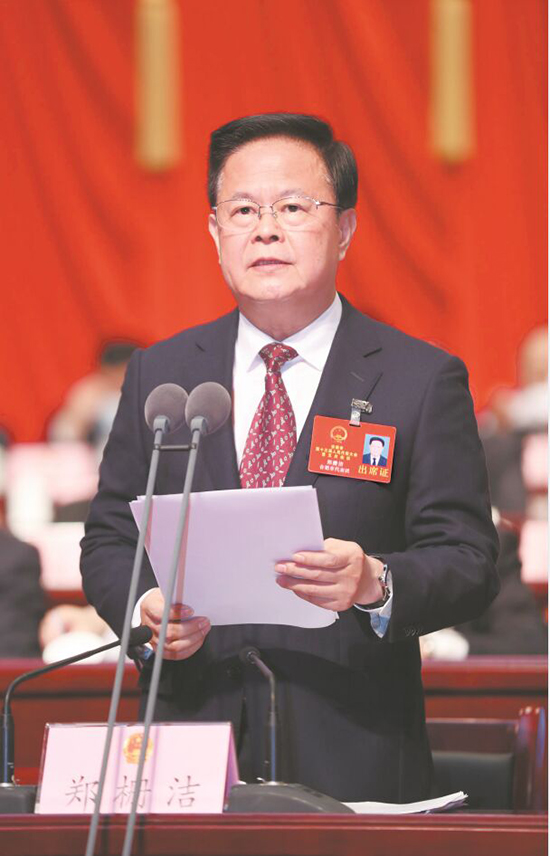 鄭柵潔強(qiáng)調(diào),人民代表大會制度是我國根本政治制度。要深入學(xué)習(xí)貫徹習(xí)近平總書記關(guān)于堅持和完善人民代表大會制度的重要思想,自覺把黨的領(lǐng)導(dǎo)貫穿人大工作始終,積極發(fā)展和完善全過程人民民主,推進(jìn)科學(xué)民主依法立法,強(qiáng)化法律監(jiān)督和工作監(jiān)督,更好行使重大事項決定權(quán),努力開創(chuàng)新時代我省人大工作新局面。全省各級人大代表要模范遵守憲法法律,優(yōu)先執(zhí)行代表職務(wù),切實提高履職能力,接地氣、察民情、聚民智,為實現(xiàn)本次大會確定的目標(biāo)任務(wù)、不斷滿足人民對美好生活的向往貢獻(xiàn)智慧和力量。