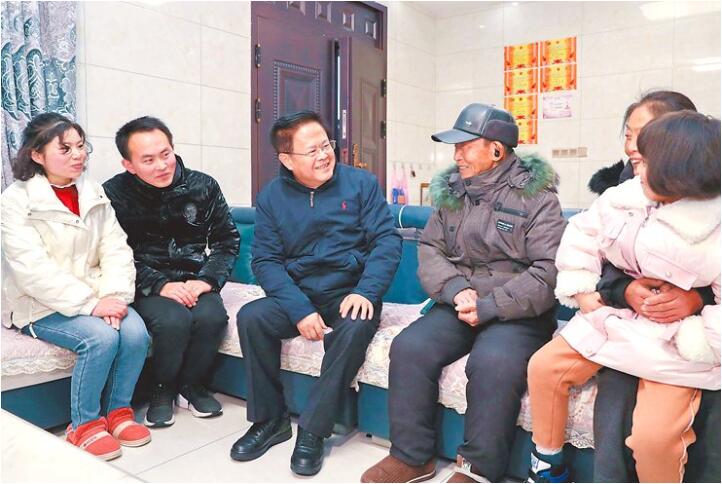 深冬的皖西大地,山巒疊嶂,云霧繚繞。23日下午,鄭柵潔來到大別山深處的霍山縣衡山鎮(zhèn)滿路橋村,走訪慰問抗美援朝老戰(zhàn)士、老黨員吳世貴,他拉著老人的手噓寒問暖,動(dòng)情地說:“您為國家作出貢獻(xiàn),黨和國家不會(huì)忘記您!”24日上午,鄭柵潔走進(jìn)裕安區(qū)青山鄉(xiāng)土門店村胡國芳家,算收入賬、謀致富計(jì),祝福她生活越來越好。隨后,鄭柵潔來到村部慰問駐村干部,勉勵(lì)他們珍惜機(jī)會(huì)、加強(qiáng)實(shí)踐鍛煉,向人民群眾和基層干部學(xué)習(xí),多做雪中送炭的實(shí)事好事。家住金安區(qū)清水河街道李臺(tái)社區(qū)的退伍軍人劉峰,因小兒子患病陷入生活困境,鄭柵潔鼓勵(lì)他樹立信心,在各方幫助下克服困難,迎接幸福生活。大國工匠、全國勞模、全國道德模范朱恒銀,是我國深部巖心鉆探的領(lǐng)跑者。24日下午,鄭柵潔登門看望,希望他發(fā)揮余熱,做好榜樣,為培養(yǎng)技能型人才作出新貢獻(xiàn)。在金安區(qū)清水河街道李臺(tái)社區(qū),鄭柵潔深入了解社區(qū)服務(wù)、疫情防控等情況,要求精準(zhǔn)落實(shí)網(wǎng)格化防控措施,做好人員回鄉(xiāng)后的日常監(jiān)測(cè),既要精細(xì)又要有“溫度”。在社區(qū)康養(yǎng)中心,他強(qiáng)調(diào),要熱情真心為老人服務(wù),加強(qiáng)對(duì)養(yǎng)老機(jī)構(gòu)的監(jiān)管,讓每一位老人都能生活得安心、靜心、舒心。每到一處,鄭柵潔都代表省委、省政府送上慰問金,祝愿大家節(jié)日快樂、身體健康、闔家幸福!