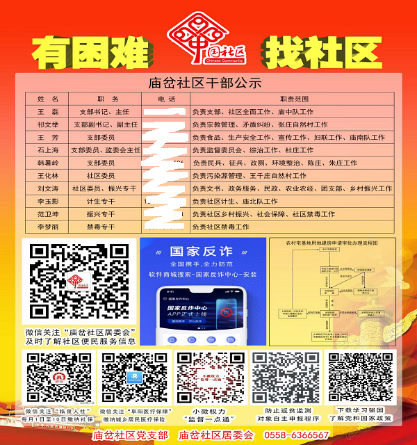 便民聯(lián)系卡詳細(xì)展示了新當(dāng)選的廟岔社區(qū)黨支部、居委會(huì)、監(jiān)委會(huì)成員的姓名、職務(wù)、分管工作和聯(lián)系電話,有利于廣泛聽(tīng)取民意,及時(shí)了解群眾生產(chǎn)、生活中存在的困難,對(duì)村民反映的棘手的問(wèn)題、困難的問(wèn)題第一時(shí)間解決,進(jìn)一步拉近了黨群干群關(guān)系。