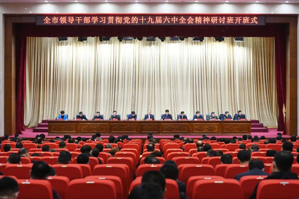 2月26日,全市領(lǐng)導(dǎo)干部學(xué)習(xí)貫徹黨的十九屆六中全會(huì)精神專題研討班開(kāi)班式舉行。市委書記孫正東出席并講話。他強(qiáng)調(diào),要深入學(xué)習(xí)貫徹黨的十九屆六中全會(huì)、省部級(jí)主要領(lǐng)導(dǎo)干部專題研討班以及全省領(lǐng)導(dǎo)干部專題研討班精神,衷心擁護(hù)“兩個(gè)確立”、忠誠(chéng)踐行“兩個(gè)維護(hù)”,埋頭苦干、勇毅前行,勇當(dāng)皖北振興排頭兵。市委副書記、市長(zhǎng)劉玉杰主持開(kāi)班式,市領(lǐng)導(dǎo)胡明瑩、李志偉、李軍、章紹偉、王波、陳兆國(guó)、白曉云、呂國(guó)平、張俊杰、邵兵等出席。