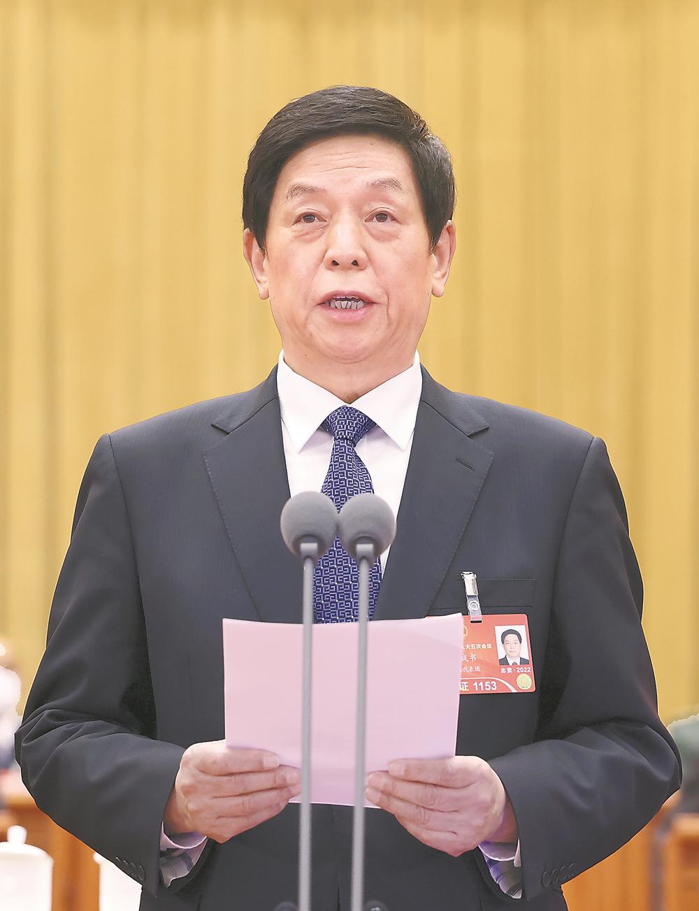 大會主席團常務主席、執(zhí)行主席栗戰(zhàn)書主持大會。大會主席團常務主席、執(zhí)行主席王晨、曹建明、張春賢、沈躍躍、吉炳軒、艾力更·依明巴海、萬鄂湘、陳竺、王東明、白瑪赤林、丁仲禮、郝明金、蔡達峰、武維華、楊振武在主席臺執(zhí)行主席席就座。