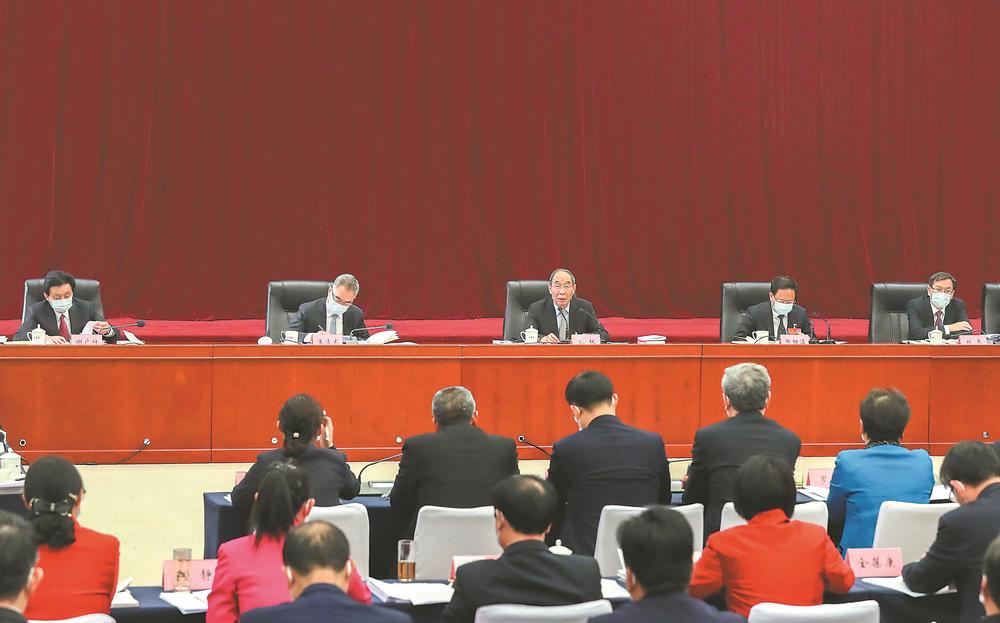 3月5日下午,十三屆全國人大五次會議安徽代表團舉行全體會議,審議李克強總理作的政府工作報告。中共中央書記處書記、中央統(tǒng)戰(zhàn)部部長尤權(quán)與代表們共同審議報告。安徽代表團團長鄭柵潔主持會議,副團長王清憲、劉惠、謝廣祥、王翠鳳參加審議。