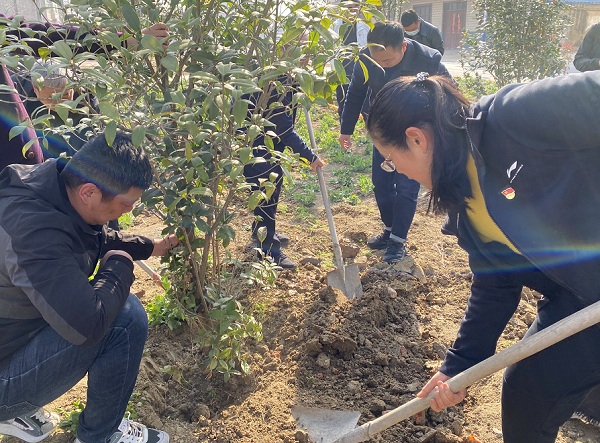 活動(dòng)開始后,大家迅速行動(dòng)起來,投入栽種的行動(dòng)中。大家揮鍬鏟土、扶苗培土、踩實(shí)新土,通力合作,一派忙碌景象。經(jīng)過一番辛勤勞動(dòng),30株海棠和金桂樹苗迎風(fēng)而立,在明媚春光中煥發(fā)蓬勃生機(jī),為初春的大地平添絲絲活力,為農(nóng)村增添綠色美麗。
