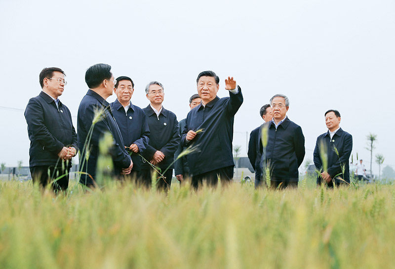 2021年9月13日至14日,中共中央總書記、國(guó)家主席、中央軍委主席習(xí)近平在陜西省榆林市考察。這是13日下午,習(xí)近平在米脂縣銀州街道高西溝村臨時(shí)下車,察看糧食作物長(zhǎng)勢(shì),同正在田間勞作的老鄉(xiāng)拉家常。新華社記者 李學(xué)仁/攝
