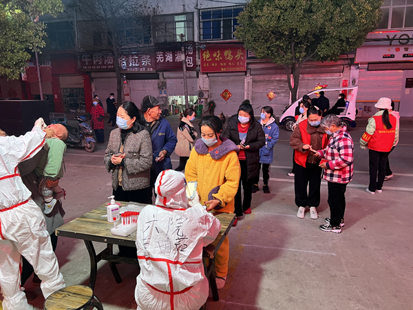 3月26日晚,三塔集鎮(zhèn)三塔村在省外返阜人員中發(fā)現(xiàn)1例核酸檢測陽性。三塔集鎮(zhèn)黨委政府快速反應(yīng),立即啟動《三塔集鎮(zhèn)新冠肺炎疫情防控工作應(yīng)急預(yù)案》,全面開展流行病學調(diào)查、核酸采樣和封控管理等措施。鎮(zhèn)村共計139名黨員干部立即奔赴疫情防控第一線。直至27日凌晨兩點三塔集鎮(zhèn)三塔村完成第一次全員核酸檢測,黨員干部維持現(xiàn)場秩序引導群眾需間隔一米,通知帶領(lǐng)醫(yī)護人員上門為行動不便的老人進行核酸檢測,確?!安宦┮粦簟⒉簧僖蝗恕?。