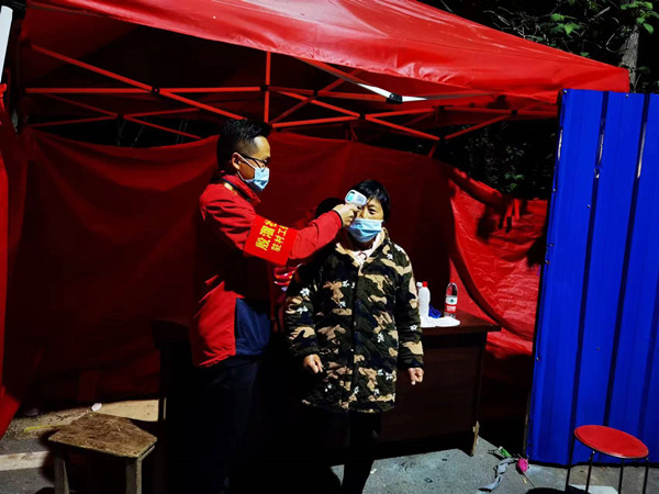 “妻子在醫(yī)院防疫一線,我在社區(qū)防疫一線,我們雖然成了抗疫一線的同事,但已經(jīng)40多天沒見過面了”,派駐到中市街道坎河社區(qū)駐村工作隊隊長付晨打趣道。疫情當前他沒有退縮,在將兩個孩子交給母親后,回到社區(qū)同駐村工作隊成員和社區(qū)“兩委”堅守在疫情防控最前線??埠由鐓^(qū)處于城區(qū)與村交界處,交通路口比較多,為有效防范人員流動造成的風險,付晨主動承擔一個交通卡點夜班值守,利用白天時間與駐村工作隊隊員到村到戶宣傳防疫政策,用實際行動發(fā)揮黨員先鋒作用,有效帶動了社區(qū)一批黨員投身社區(qū)防疫一線,為群眾架起了一道安全網(wǎng)。