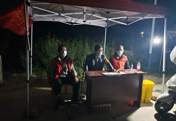 針對村級疫情防控工作,于濤隊長團結(jié)帶領(lǐng)駐村工作隊隊員及村“兩委”開展摸底排查、政策宣傳、核酸檢測、勸導值守等工作,他主動參與卡點值守,密切監(jiān)控來往人員并及時勸返臨時外來人員,認真對來往人員、車輛進行信息登記,查驗健康碼、行程碼。他說:“在疫情面前,只要我們每個人都擔負起應(yīng)有的責任,堅定信心,同舟共濟,科學防控,精準施策,必定能取得抗疫的最后勝利”。