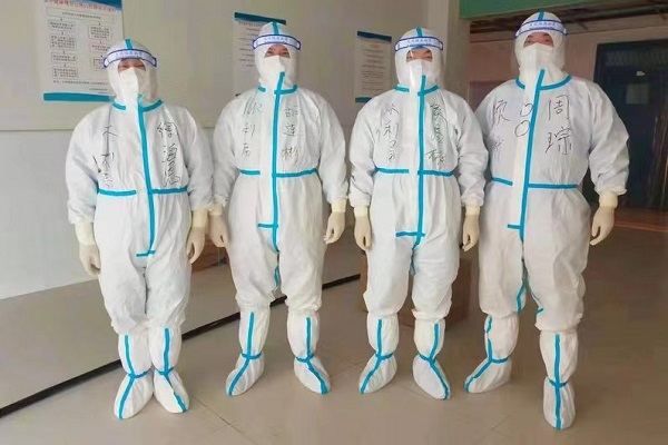 到達(dá)育才學(xué)校隔離點(diǎn)之后,經(jīng)過(guò)短暫培訓(xùn),胡連彬開(kāi)始投入工作。隔離點(diǎn)130人生活用品、醫(yī)療物資發(fā)放、隔離間消毒、一日三餐配送、生活垃圾的清理,是每天必修課,如此反復(fù)。在密不透風(fēng)的厚厚的防護(hù)服包裹下,就連轉(zhuǎn)身、低頭這樣常規(guī)動(dòng)作都顯得困難,汗水經(jīng)常浸透全身,順著額頭留下來(lái)。為了不影響工作,胡連彬和隊(duì)友們中間盡量不喝水不去廁所,只能等下班……