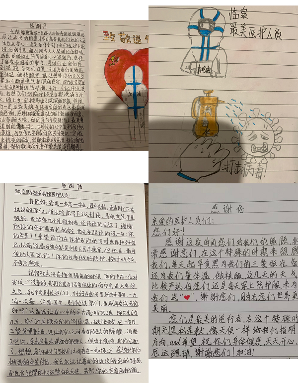 在接受隔離觀察期間,剛開始有的隔離人員焦躁不安、情緒激動,在做好疫情防控、安置工作的同時,集中隔離點醫(yī)護人員還會給隔離人員做心理疏導,每天定時發(fā)放中藥飲并告知隔離人員可以適當運動,加油鼓勁,讓他們保持積極樂觀的心態(tài)。慢慢的,隔離人員也能體會到醫(yī)務人員的艱辛,“謝謝你們的關照,讓我很感動”、“謝謝,你們辛苦了”……一封封感謝信,也是給予集中隔離點醫(yī)護人員的力量和溫暖。一份溫暖,一份責任,隔離不隔愛, 這是對臨泉縣疫情防控工作人員的充分肯定,一切付出都是值得的!