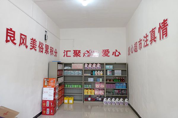 干凈整潔的積分超市內(nèi),貨架上擺放著洗衣液、洗潔精、肥皂等各種生活用品。在太和縣清淺鎮(zhèn)王各村愛心積分超市內(nèi),這些商品不用現(xiàn)金購買,只用積分兌換。