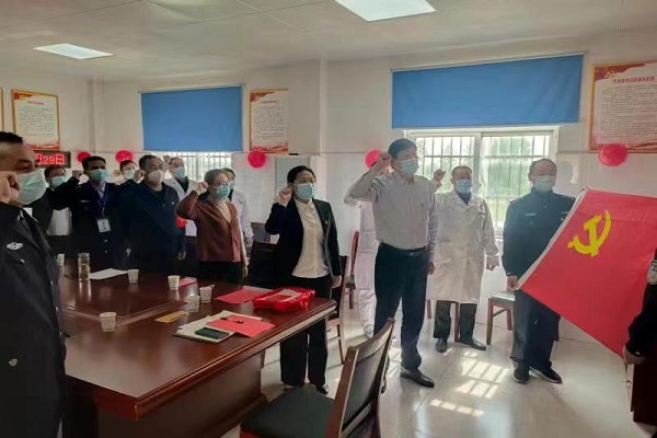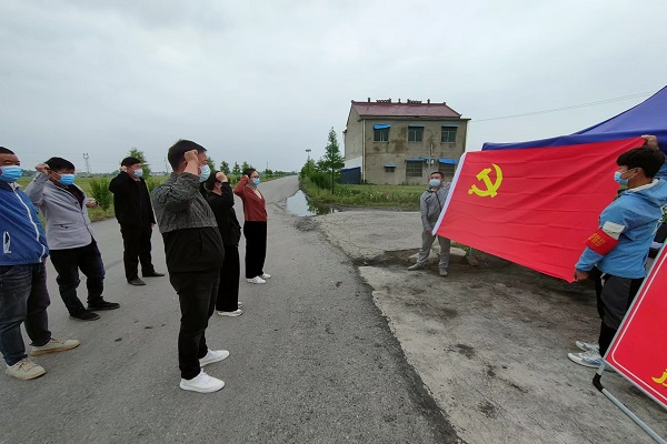 其它5位堅守崗位的黨員在臨時黨支部書記的帶領(lǐng)下,和全體黨員一道共同慶生,重溫了入黨誓詞。