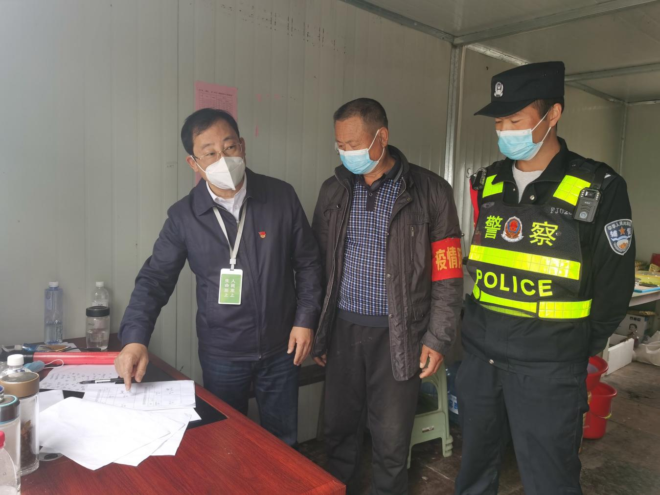 圖為市疫情防控服務(wù)督導(dǎo)組五一假期夜間深入關(guān)屯鄉(xiāng)省道董郢村疫情防控卡點查看人員值班值守、防控措施和車輛登記落實情況。
