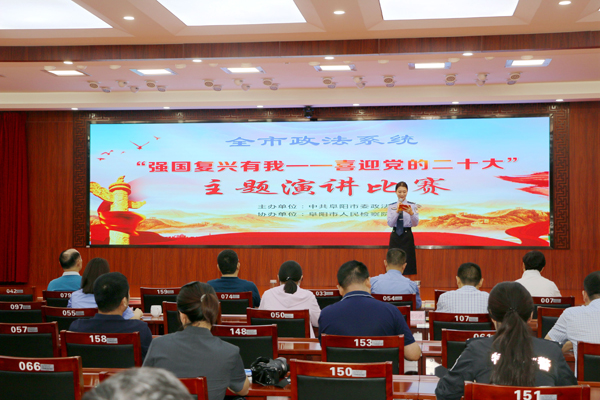 為迎接黨的二十大勝利召開開,7月7日下午,阜陽市政法系統(tǒng)“強國復(fù)興有我——喜迎黨的二十大”主題演講比賽在市人民檢察院視頻會議室舉行。市委政法委常務(wù)副書記、二級巡視員周奉田出席比賽,市直政法各單位、各縣市區(qū)政法委分管領(lǐng)導(dǎo)到場觀賽。