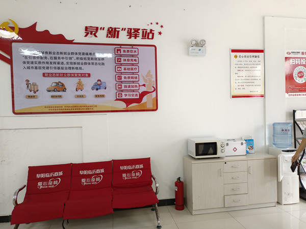 暖心服務集聚驛站,下好“凝聚棋”。針對新就業(yè)群體特點和實際需求,統(tǒng)籌城市社區(qū)黨群服務中心、商圈樓宇,打造服務陣地,為新就業(yè)群體提供飲水休息、圖書閱讀、手機充電等多項暖心服務。在傳統(tǒng)節(jié)日、嚴寒酷暑等時間節(jié)點,聯(lián)合群團組織和非公企業(yè)開展“夏送清涼、冬送溫暖”等慰問活動。聚焦新業(yè)態(tài)新就業(yè)群體黨建痛難點,堅持“在引領中服務、在服務中引領”,開辟新業(yè)態(tài)新就業(yè)群體服務區(qū)域,依托潁泉萬達廣場、潁泉農商行銀行網點、紅色物業(yè)小區(qū)等建成一批泉“新”驛站,配備必要基礎設施,為快遞、網約車、外賣等行業(yè)從業(yè)人員提供渴了能喝水、熱了能乘涼、冷了能取暖、傷了能救援、累了能休息等暖心服務,搭建起以心換“新”、同“新”同行的溝通橋梁。