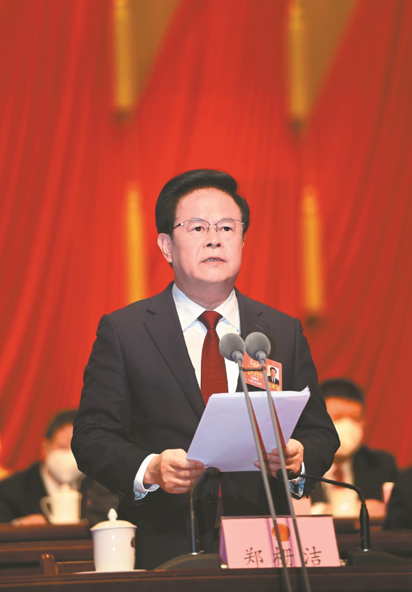 1月17日上午,省委書記、省人大常委會主任鄭柵潔在省十四屆人大一次會議閉幕會上講話。本報記者 楊竹 攝
