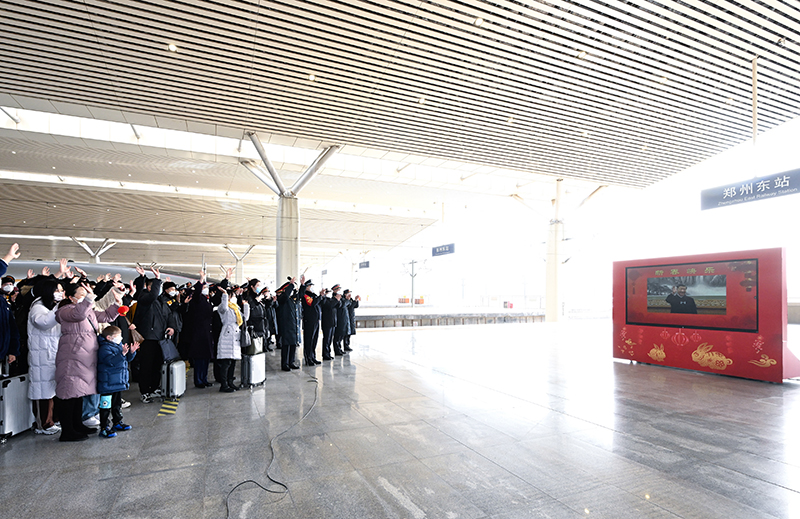 鄭州東站是我國(guó)最大的高鐵站之一,今年春運(yùn)期間預(yù)計(jì)旅客發(fā)送量337萬(wàn)人。習(xí)近平通過(guò)視頻連線看望慰問(wèn)鐵路客運(yùn)干部職工。在東站一站臺(tái),鄭州東站站長(zhǎng)匯報(bào)車站春運(yùn)總體情況。習(xí)近平又詳細(xì)詢問(wèn)車站現(xiàn)在每天的客流量是多少?防疫措施落實(shí)得怎么樣?春運(yùn)治安采取了哪些措施?囑咐他們精心組織調(diào)度,嚴(yán)守安全底線,確保廣大旅客安全出行。月臺(tái)上的旅客看見(jiàn)總書(shū)記,爭(zhēng)相趕到鏡頭前,向總書(shū)記問(wèn)好。習(xí)近平親切詢問(wèn)他們是回家過(guò)年還是外出旅游,叮囑他們注意旅途安全。習(xí)近平指出,春運(yùn)是關(guān)系人民群眾切身利益、關(guān)系經(jīng)濟(jì)發(fā)展和社會(huì)穩(wěn)定的一件大事。今年春運(yùn)是疫情防控進(jìn)入新階段后的第一個(gè)春運(yùn),客流量大幅回升。交通運(yùn)輸部門(mén)要堅(jiān)決貫徹落實(shí)黨中央要求,提升保通保暢能力,確保人民群眾平安健康出行,確保重點(diǎn)物資運(yùn)輸暢通有序。要堅(jiān)持底線思維,加強(qiáng)對(duì)極端惡劣天氣的監(jiān)測(cè)和預(yù)警,深入開(kāi)展安全隱患排查治理,堅(jiān)決遏制重特大安全事故發(fā)生。要加強(qiáng)對(duì)出行相對(duì)集中的務(wù)工流、學(xué)生流的服務(wù)引導(dǎo),確保他們節(jié)前安全返鄉(xiāng)、節(jié)后順利返崗返校。要嚴(yán)格落實(shí)各項(xiàng)防控規(guī)定,最大限度降低交叉感染幾率,保障旅客身體健康。習(xí)近平強(qiáng)調(diào),長(zhǎng)期以來(lái),交通運(yùn)輸系統(tǒng)的干部職工埋頭苦干,擔(dān)當(dāng)奉獻(xiàn),功不可沒(méi)。春節(jié)期間,許多同志要堅(jiān)守崗位。習(xí)近平代表黨中央,向交通運(yùn)輸系統(tǒng)的廣大干部職工致以新春的祝福,并祝廣大旅客旅途順利。