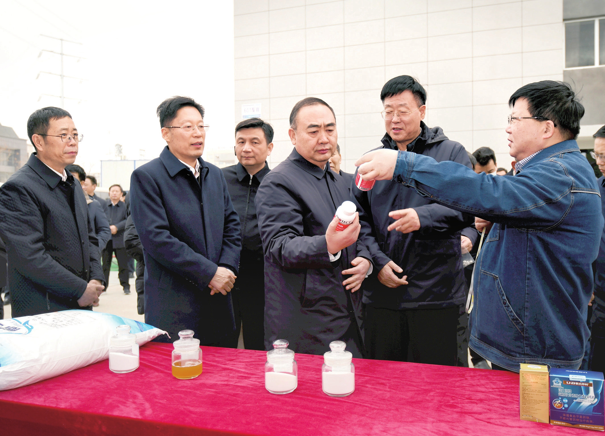 市委書記孫正東,市委副書記、市長劉玉杰率隊,在位于潁泉區(qū)的安徽福方高科年產(chǎn)5000噸氨基葡萄糖項目觀摩。圖/郭海洋