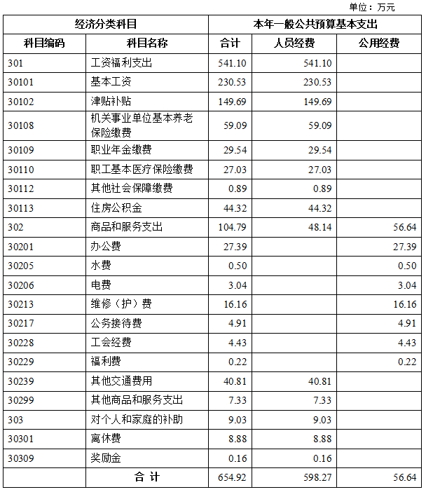 (一)人員經(jīng)費(fèi)598.27萬(wàn)元,主要包括:基本工資230.53萬(wàn)元、津貼補(bǔ)貼149.69萬(wàn)元、機(jī)關(guān)事業(yè)單位基本養(yǎng)老保險(xiǎn)費(fèi)59.09萬(wàn)元、職業(yè)年金繳費(fèi)29.54萬(wàn)元、職工基本醫(yī)療保險(xiǎn)繳費(fèi)27.03、其他社會(huì)保障繳費(fèi)0.89萬(wàn)元、住房公積金44.32萬(wàn)元、離休費(fèi)8.88萬(wàn)元、獎(jiǎng)勵(lì)金0.16萬(wàn)元、其他交通費(fèi)用40.81萬(wàn)元、其他商品和服務(wù)支出7.33萬(wàn)元。