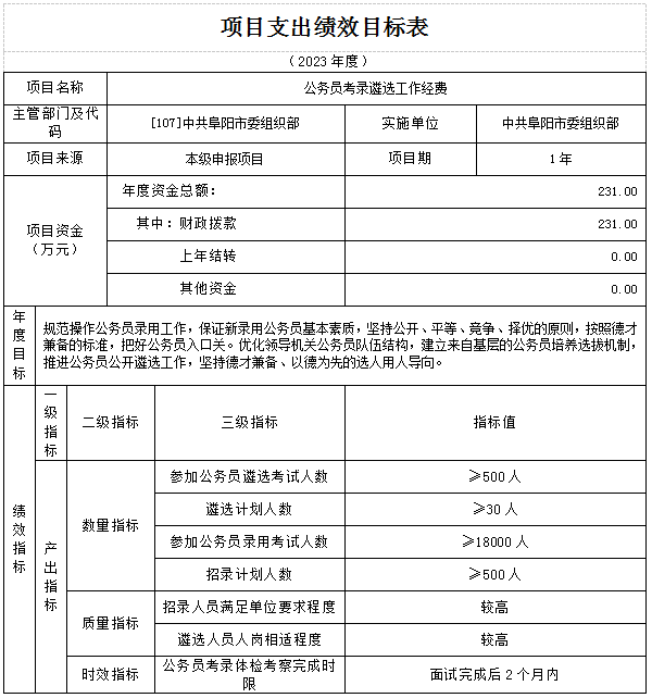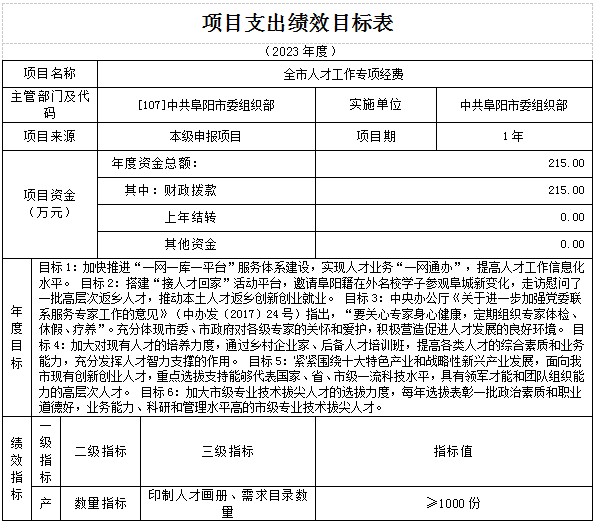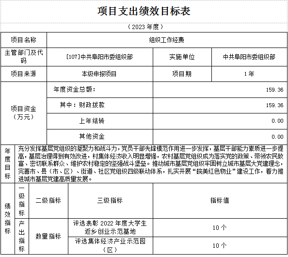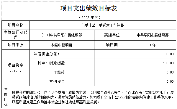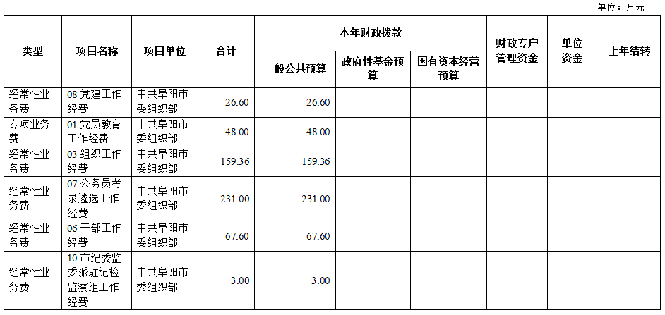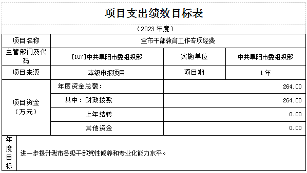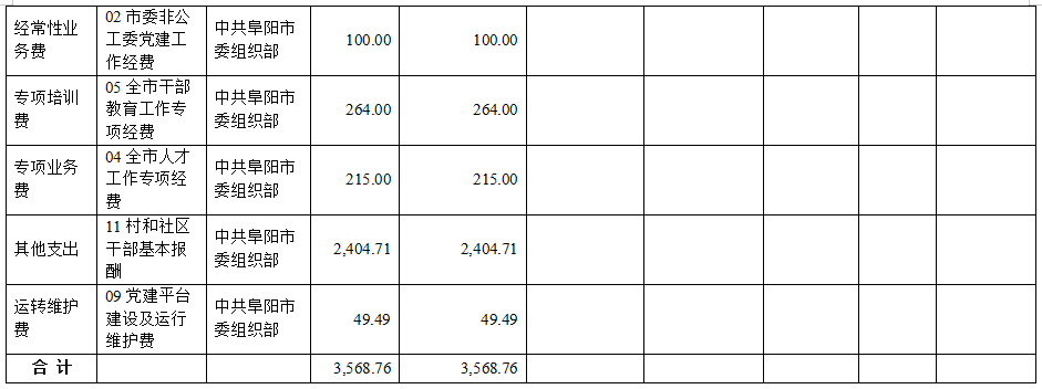中共阜陽(yáng)市委組織部2023年項(xiàng)目支出表