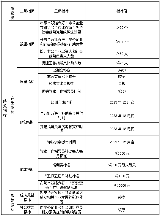 (5)項(xiàng)目?jī)?nèi)容。以提升黨的組織和工作“兩個(gè)覆蓋”質(zhì)量為主線,以創(chuàng)建“雙強(qiáng)六好”、“雙比雙爭(zhēng)”黨組織為抓手,增強(qiáng)黨組織政治功能和組織力,激發(fā)黨員隊(duì)伍活力,努力提升全市非公企業(yè)和社會(huì)組織黨建工作整體水平,以高質(zhì)量黨建工作助推非公企業(yè)和社會(huì)組織高質(zhì)量發(fā)展。