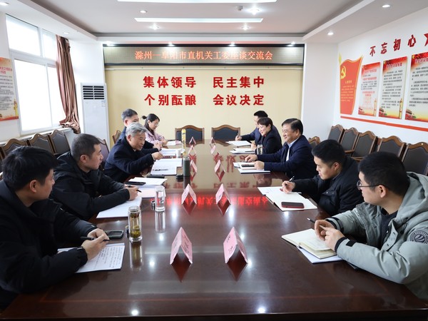 2月21日,滁州市直機(jī)關(guān)工委副書(shū)記厲洪武一行來(lái)阜陽(yáng)調(diào)研交流機(jī)關(guān)黨建品牌創(chuàng)建及機(jī)關(guān)黨建工作。阜陽(yáng)市直機(jī)關(guān)工委書(shū)記李濤出席座談交流會(huì)并陪同調(diào)研。