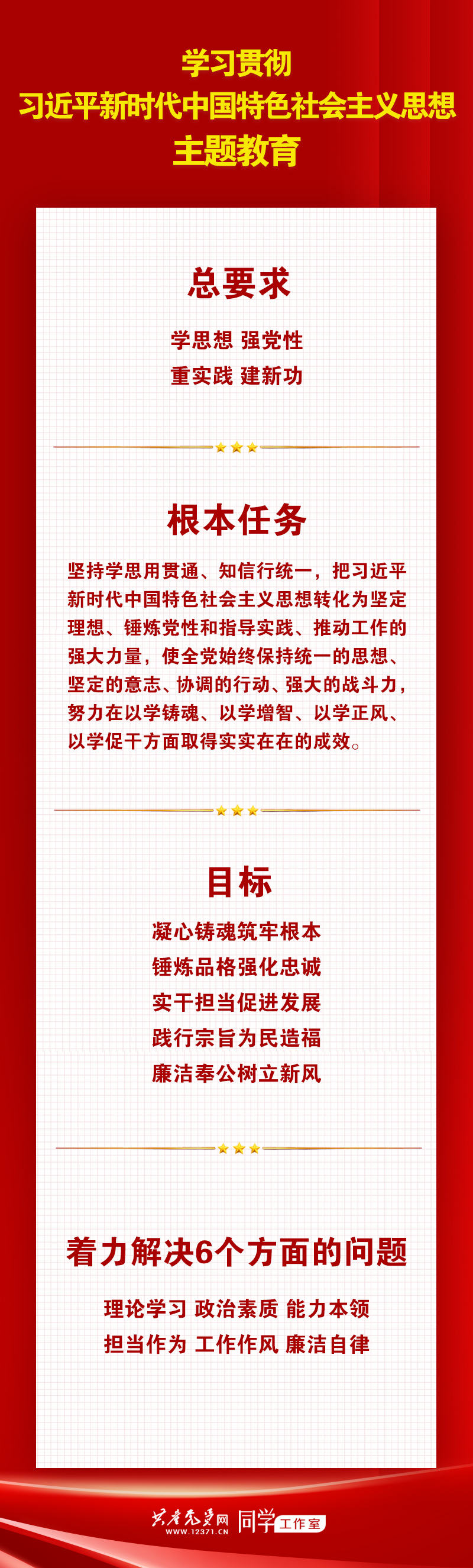 總要求是“學(xué)思想、強(qiáng)黨性、重實(shí)踐、建新功”。