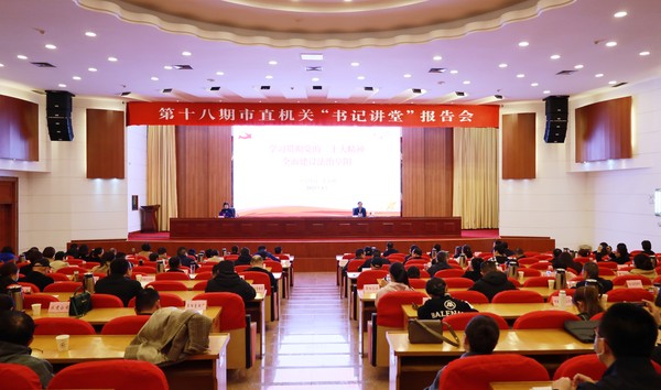 為深入貫徹落實黨的二十大精神,認真踐行習近平法治思想,進一步提升市直機關廣大黨員干部開展依法治市工作的能力水平,4月6日下午,第十八期市直機關“書記講堂”主講堂報告會在市政府一樓會議室舉辦,邀請市委依法治市辦副主任,市司法局黨組書記、局長李方明作報告。市直機關工委書記李濤主持報告會。市直及中央、省駐阜直屬黨組織負責人和黨務干部,市直微宣講團成員,市直機關工委黨員干部等近150人參會。