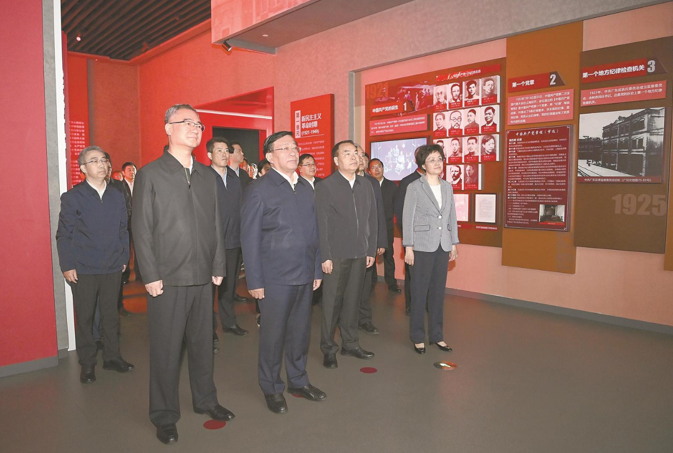 省黨風(fēng)廉政教育館是開(kāi)展黨史黨性黨風(fēng)黨紀(jì)教育的重要平臺(tái)。展館以“永遠(yuǎn)在路上”為主題,分為序廳、主展廳和尾廳。韓俊等首先來(lái)到序廳,認(rèn)真觀看專(zhuān)題片《永遠(yuǎn)在路上》,他深有感觸地說(shuō),全面從嚴(yán)治黨永遠(yuǎn)在路上,黨的自我革命永遠(yuǎn)在路上,要堅(jiān)定不移沿著習(xí)近平總書(shū)記指引的方向,弘揚(yáng)偉大建黨精神,一刻不停推進(jìn)全面從嚴(yán)治黨。隨后,韓俊等依次參觀“紀(jì)律立黨·從嚴(yán)治黨”“廉潤(rùn)江淮·清風(fēng)揚(yáng)帆”“以案為鑒·警鐘長(zhǎng)鳴”“不忘初心·永葆清廉”四個(gè)展廳。在一幅幅圖片、一個(gè)個(gè)案例、一份份懺悔書(shū)前,韓俊不時(shí)插話(huà)詢(xún)問(wèn),與周?chē)窘涣?。他語(yǔ)重心長(zhǎng)地說(shuō),這些案例很多就發(fā)生在我們身邊,不少都是熟悉的人、熟悉的事,教訓(xùn)非常深刻,給我們上了一堂生動(dòng)的政治課、思想課、廉政課,也是過(guò)了一次黨內(nèi)生活、接受了一次黨性錘煉。
