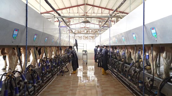 以科技強農(nóng)促農(nóng)業(yè)提升。李樓村通過引進(jìn)優(yōu)質(zhì)奶牛品種、建立奶源質(zhì)量追溯體系、提高現(xiàn)代化管理水平等措施,大力發(fā)展奶牛養(yǎng)殖業(yè)。安徽時代牧業(yè)有限公司養(yǎng)殖車間里,自動投料機、擠奶器等現(xiàn)代化設(shè)施設(shè)備一應(yīng)俱全,現(xiàn)有奶牛存欄量940頭,每頭奶牛每天平均產(chǎn)奶量在30公斤左右,年產(chǎn)值約1200萬元,帶動周邊50多名群眾就業(yè),村民經(jīng)過培訓(xùn)后轉(zhuǎn)變成熟練掌握奶牛飼養(yǎng)技術(shù)的產(chǎn)業(yè)工人,每個月收入穩(wěn)定在5000元左右。