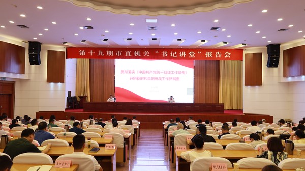 為深入學(xué)習(xí)貫徹落實(shí)黨的二十大精神,認(rèn)真貫徹習(xí)近平總書記關(guān)于做好新時(shí)代黨的統(tǒng)一戰(zhàn)線工作的重要思想,全面落實(shí)《中國(guó)共產(chǎn)黨統(tǒng)一戰(zhàn)線工作條例》,6月14日上午,第十九期市直機(jī)關(guān)“書記講堂”主講堂報(bào)告會(huì)在市政府一樓會(huì)議室舉辦,邀請(qǐng)市委統(tǒng)戰(zhàn)部常務(wù)副部長(zhǎng)王顯明作報(bào)告。市直機(jī)關(guān)工委書記李濤出席報(bào)告會(huì),工委副書記汪瑤主持報(bào)告會(huì)。市直及中央、省駐阜直屬黨組織負(fù)責(zé)人和黨務(wù)干部,市直微宣講團(tuán)成員,市直機(jī)關(guān)工委黨員干部等近150人參會(huì)。