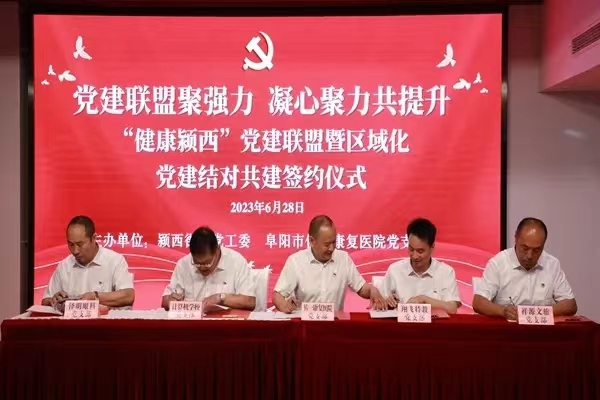 為深入學習貫徹黨的二十大精神,落實阜陽市關(guān)于開展“紅心向黨、益企興阜”活動實施意見,近日,潁西街道在阜陽市佑一康復醫(yī)院舉辦“黨建聯(lián)盟聚強力、凝心聚力共提升”——“健康潁西”黨建聯(lián)盟暨區(qū)域化黨建結(jié)對共建簽約儀式,33家非公企業(yè)、社區(qū)黨組織齊聚一堂,區(qū)委組織部部務(wù)會成員、區(qū)委非公工委專職副書記張毓,潁西街道黨工委書記張傳鵬、阜陽市佑一康復醫(yī)院黨支部書記韓鵬、社區(qū)及“兩新”組織黨組織書記等近70余人參加。