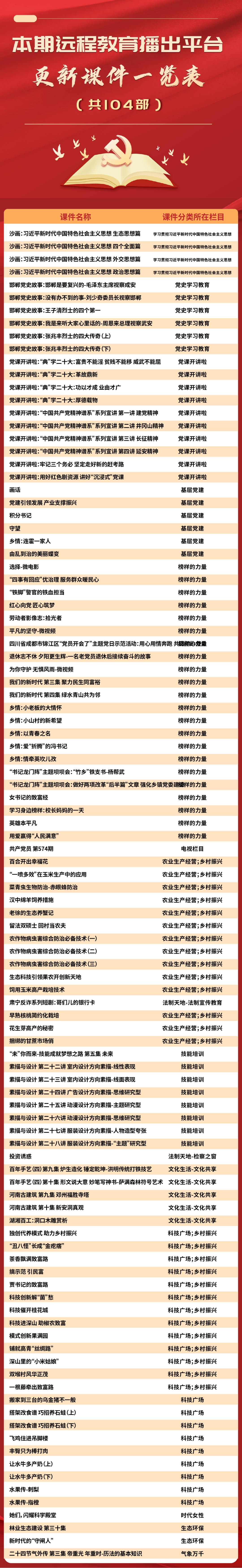 為進(jìn)一步提升黨員遠(yuǎn)程教育學(xué)用結(jié)合實(shí)效,幫助全省基層遠(yuǎn)程教育終端站點(diǎn)更便捷地掌握課件資源庫(kù)內(nèi)容,省黨員電教中心通過(guò)安徽先鋒微訊定期發(fā)布精品節(jié)目推薦以及最新上傳更新節(jié)目單,請(qǐng)通過(guò)遠(yuǎn)程教育終端站點(diǎn)或安徽先鋒網(wǎng)-先鋒網(wǎng)視點(diǎn)播收看。