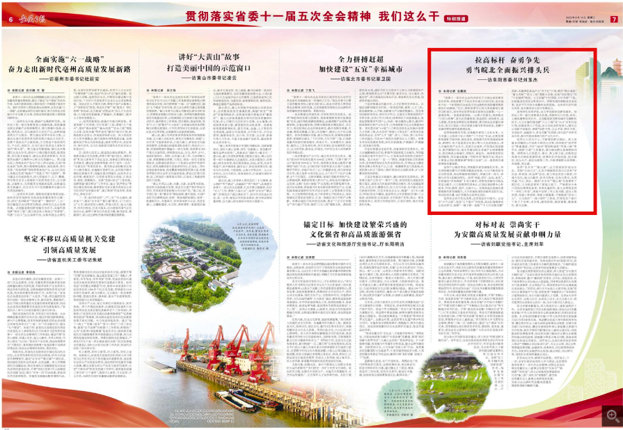 8月16日出版的《安徽日報》推出“貫徹落實省委十一屆五次全會精神我們這么干”特別報道,刊發(fā)專訪市委書記劉玉杰文章。