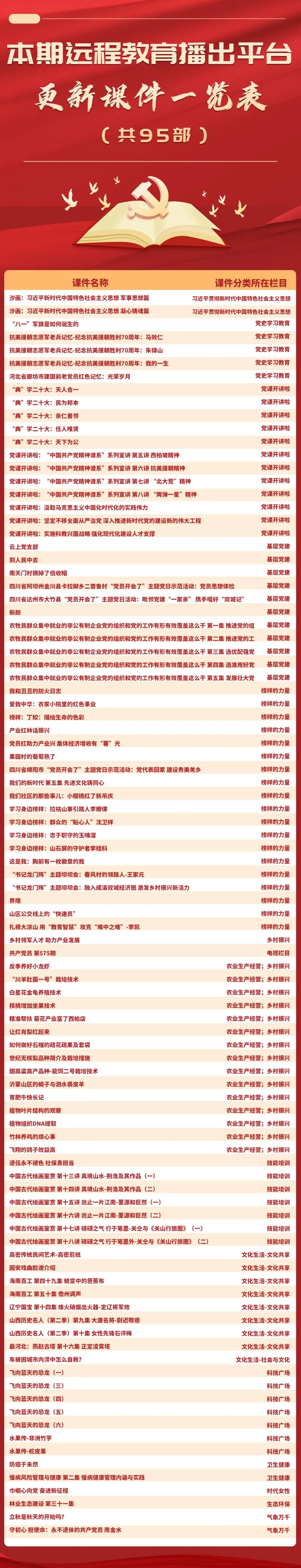 為進(jìn)一步提升黨員遠(yuǎn)程教育學(xué)用結(jié)合實(shí)效,幫助全省基層遠(yuǎn)程教育終端站點(diǎn)更便捷地掌握課件資源庫內(nèi)容,省黨員電教中心通過安徽先鋒微訊定期發(fā)布精品節(jié)目推薦以及最新上傳更新節(jié)目單,請通過遠(yuǎn)程教育終端站點(diǎn)或安徽先鋒網(wǎng)-先鋒網(wǎng)視點(diǎn)播收看。