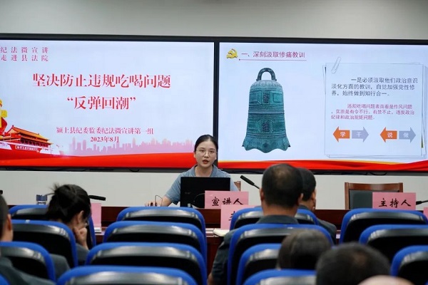 潁上縣紀委監(jiān)委從機關(guān)各科室、紀檢監(jiān)察協(xié)作區(qū)、派駐機構(gòu)及鄉(xiāng)鎮(zhèn)紀委中挑選15名宣講骨干,組成5組宣講小分隊,深入縣直單位、鄉(xiāng)鎮(zhèn)、學(xué)校、醫(yī)院、國企等,全覆蓋式開展違規(guī)吃喝專題宣講。本輪宣講以“堅決防止違規(guī)吃喝歪風(fēng)‘反彈回潮’”為主題,深入分析違規(guī)吃喝問題的長期性、頑固性、隱蔽性特點,結(jié)合具體案例及紀法條例對違規(guī)吃喝有關(guān)問題進行解讀,用身邊事警醒身邊人,以教育避免教訓(xùn)。